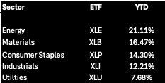 This reads like classic “late cycle” trading, where commodity-focused sectors share the limelight with defensive groups. Energy and Materials usually find pricing power after years of global expansion, while Staples and Utilities are where capital goes to hide when the macro-outlook gets murky. Industrials are the odd man out here, but they’ve got price momentum on their side.