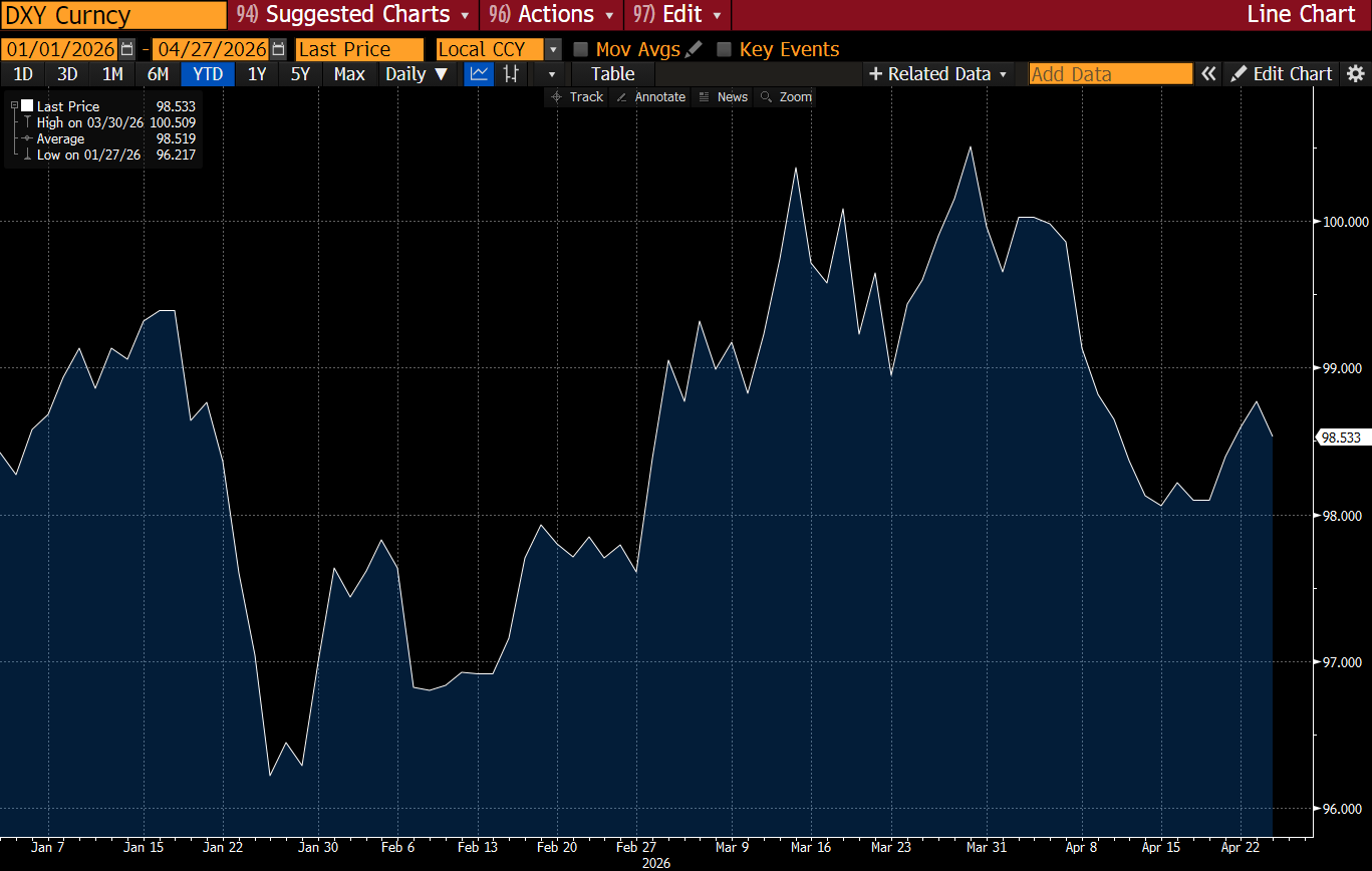 The divergence comes from the Fed. Increasing political pressure on the Federal Reserve to ease policy ahead of midterm elections — pressure to cut rates even as core PCE runs above four percent — is the mechanism through which dollar weakness emerges not as a reserve currency crisis but as a conventional rate differential story.