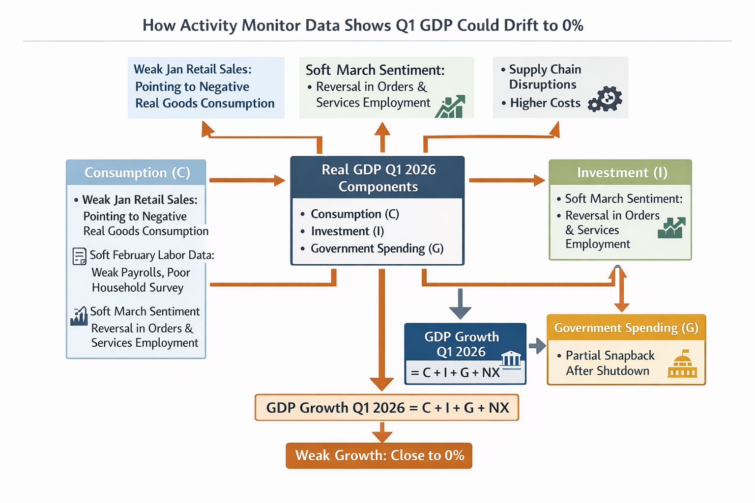 The current shock will most likely drift Q1 GDP closer to zero but likely keep it positive because of the mid-quarter momentum.