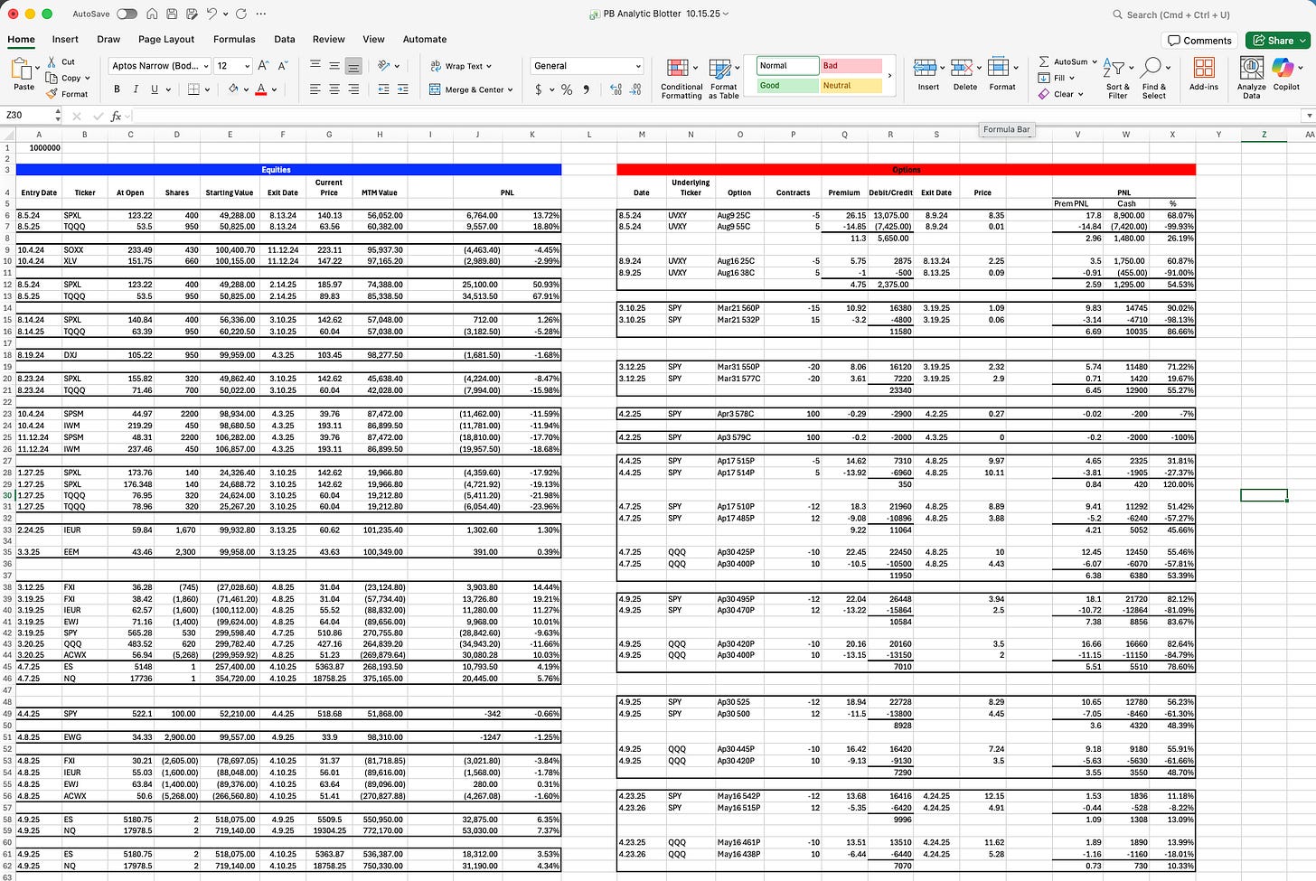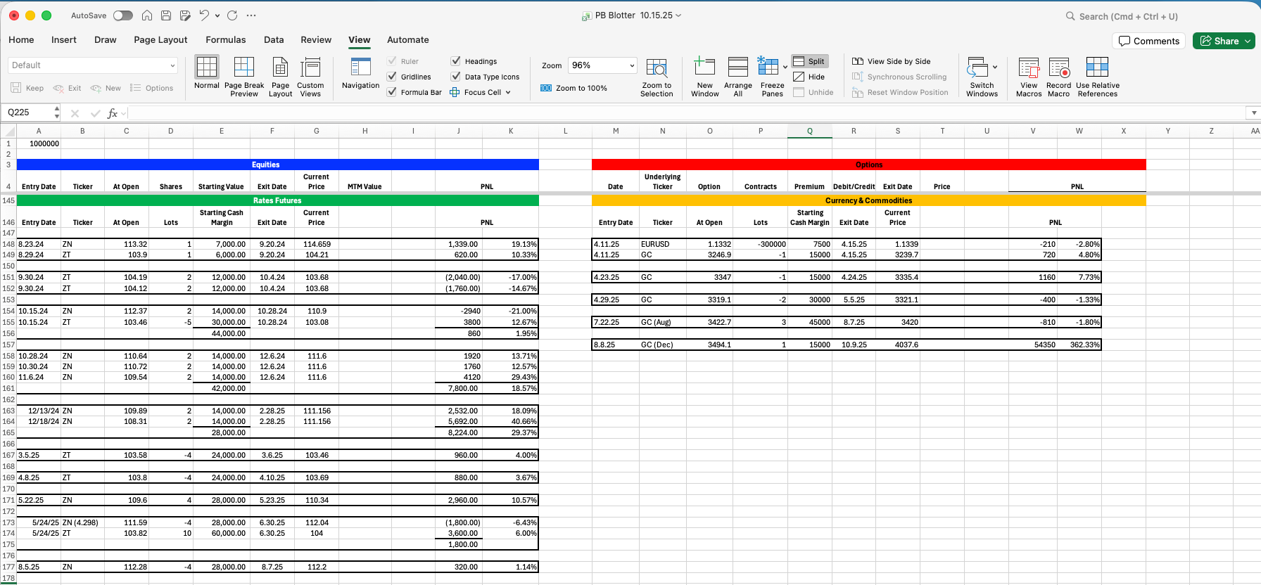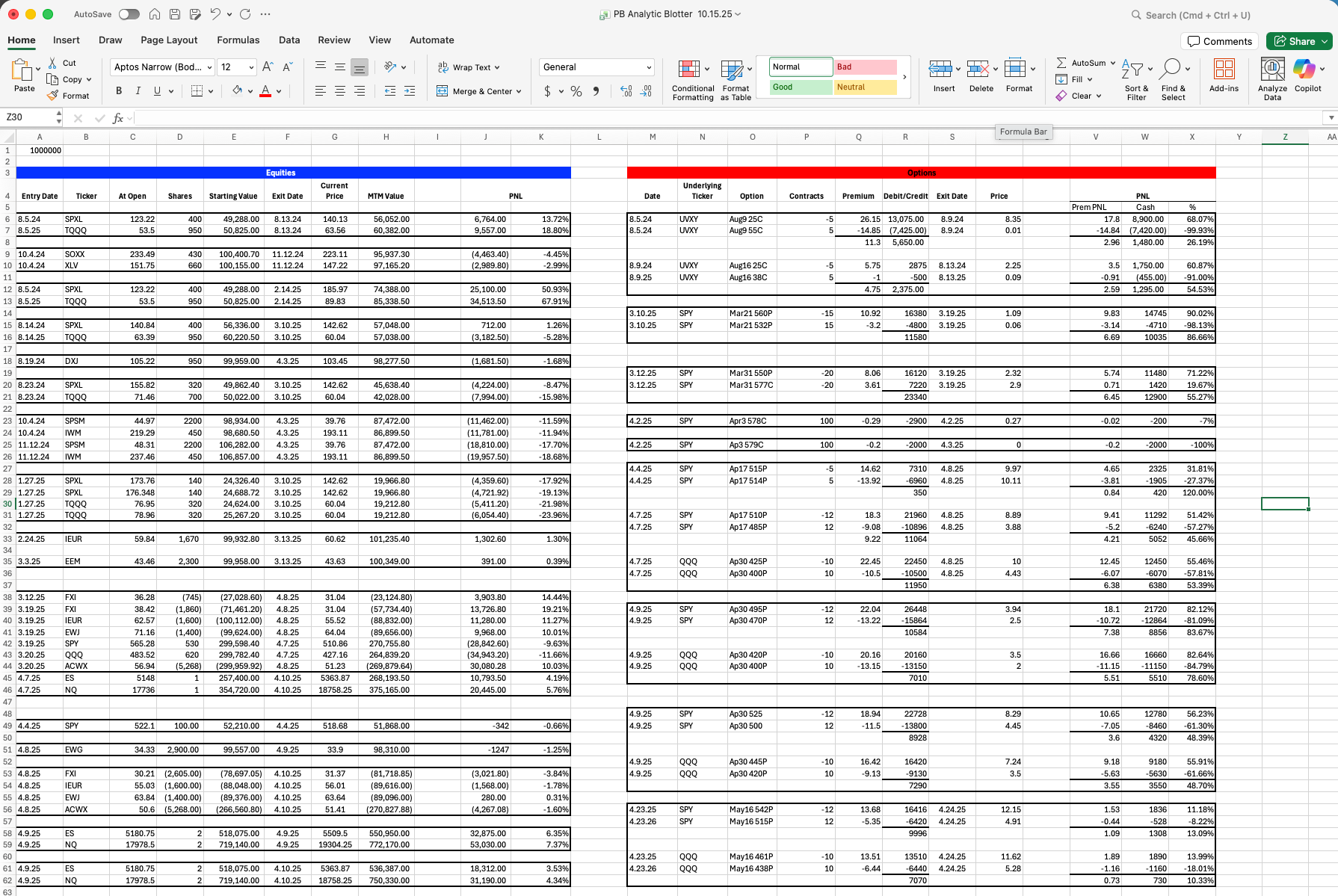Below are screen shots of every single position taken, sizing, entries and exits, and resulting PNL. All trades had alerts given either on Substack or X.