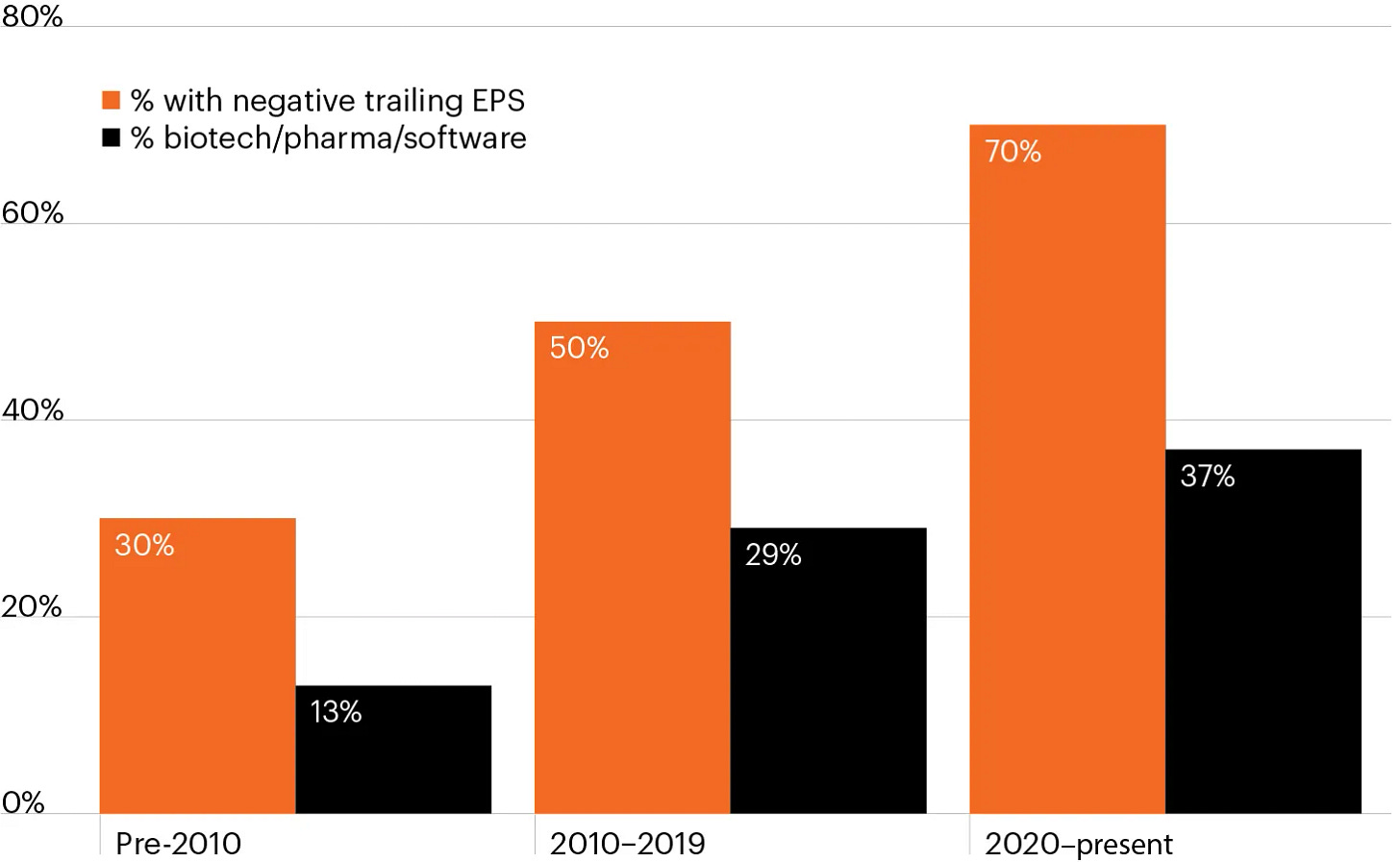 As shown below, IPOs have become more speculative and YOLO in nature, requiring significant investments in R&D before achieving scale.