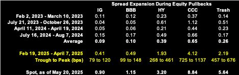 Spreads blew out considerably more in April than in any other pullback since the post 2022 bear market.