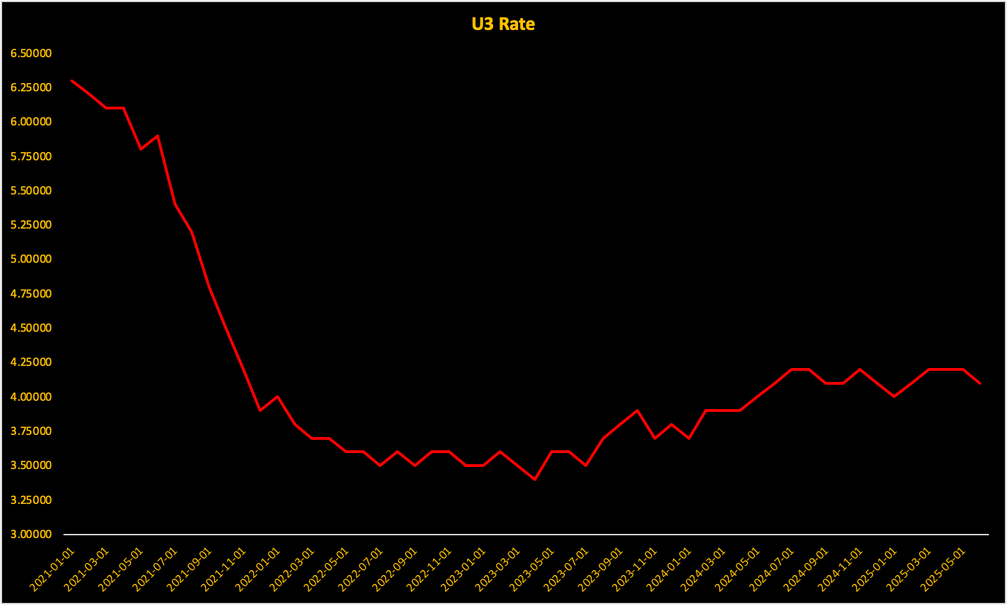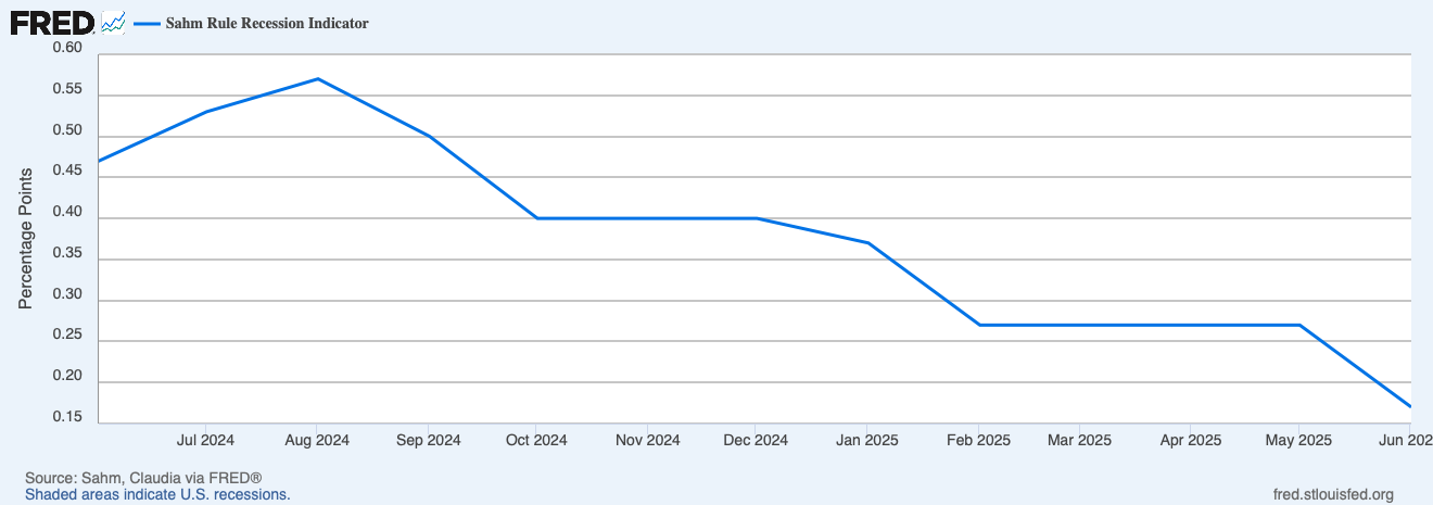 It would take a six-month sequential rise of .1% every month – to 4.7% unemployment – to even trigger the Sahm Rule (.533%) by December 2025.