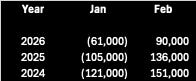 Compared to the averages of the prior two years, these adjustments were far more favorable to January and significantly less so for February.