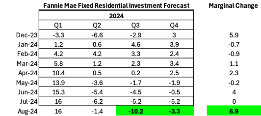 Forecasts for increases in fixed residential are consistent with lower interest rates and a housing-driven growth impulse into year end.
