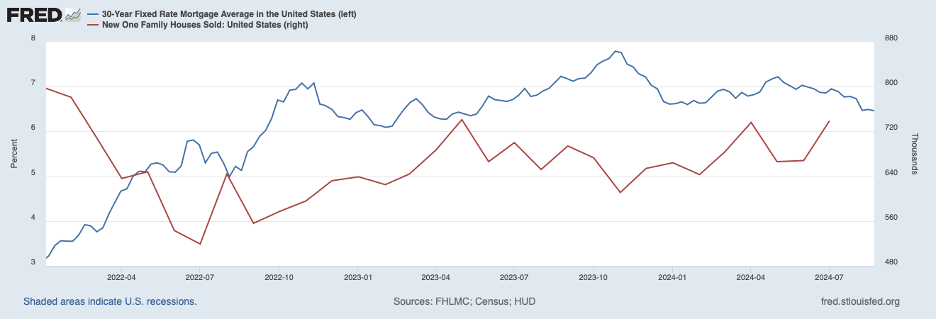 The data validates this view. Mortgage rates lead sales, which in turn lead new unit construction. New home sales are the most leading of all housing metrics, but they are a noisy time series and subject to heavy revisions.